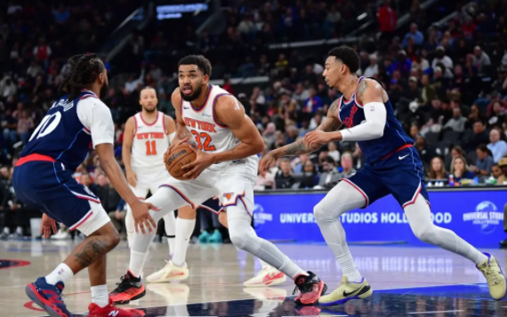 尼克斯队首发:卡尔-安东尼-唐斯、杰伦-布伦森、OG-阿奴诺比、约什-哈特、米卡尔-布里奇斯