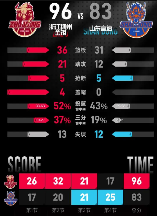 琼斯22+10高诗岩6中0 浙江客场击败山东