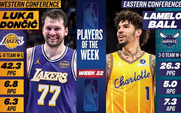 时间:2026-03-24 08:18:27北京时间3月24日,NBA官方公布了第22周的周最佳球员,湖人球星卢卡-东契奇当选西部周最佳,黄蜂球星拉梅洛-鲍尔(三球)当选东部周最佳。哈登、阿门、文班亚马等球星获得提名。