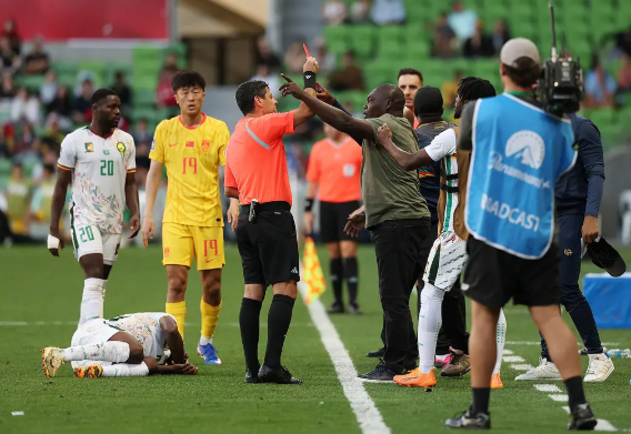 第57分钟,拜合拉木中场拼抢时,踩踏已经倒地的对手,不过主裁判并未作出任何判罚,随后VAR介入,经过回看主裁维持原判,喀麦隆主帅因为抗议吃到一张红牌;第74分钟,纳马索禁区内过掉三名国足球员后横传,阿里乌姆大空位机会将球踢飞;第79分钟,喀麦隆右路下底传中,阿里乌姆后点无人盯防凌空抽射踢飞;第91分钟,斯特凡·凯勒回防中犯规,吃到红牌;最终全场比赛结束,国足0-2不敌喀麦隆。