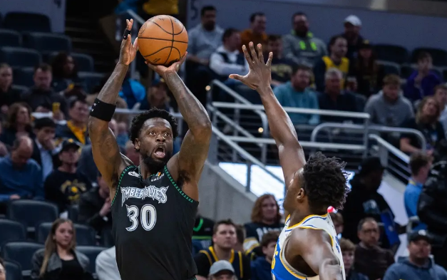森林狼队首发:阿约-多森姆、朱利叶斯-兰德尔、丹特-迪文琴佐、迈克-康利、鲁迪-戈贝尔