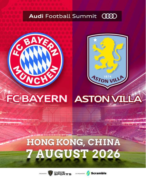 时间:2026-04-11 09:08:59欧冠赛场激战正酣,德甲豪门拜仁客场击败皇家马德里,状态火热,目前在德甲排名榜首的他们也很有希望拿下本赛季的冠军奖杯。封面新闻记者4月10日获悉,今年八月,拜仁将开启中国行,目前确定的比赛是,将于8月7日,在香港启德体育场,对阵英超球队阿斯顿维拉,这也将是拜仁时隔20年再回香港比赛。