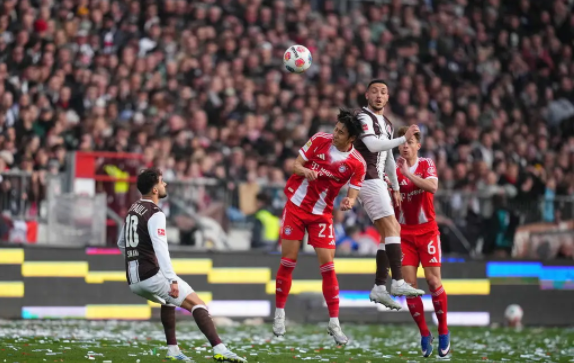 全场比赛结束,拜仁慕尼黑5-0大胜圣保利。