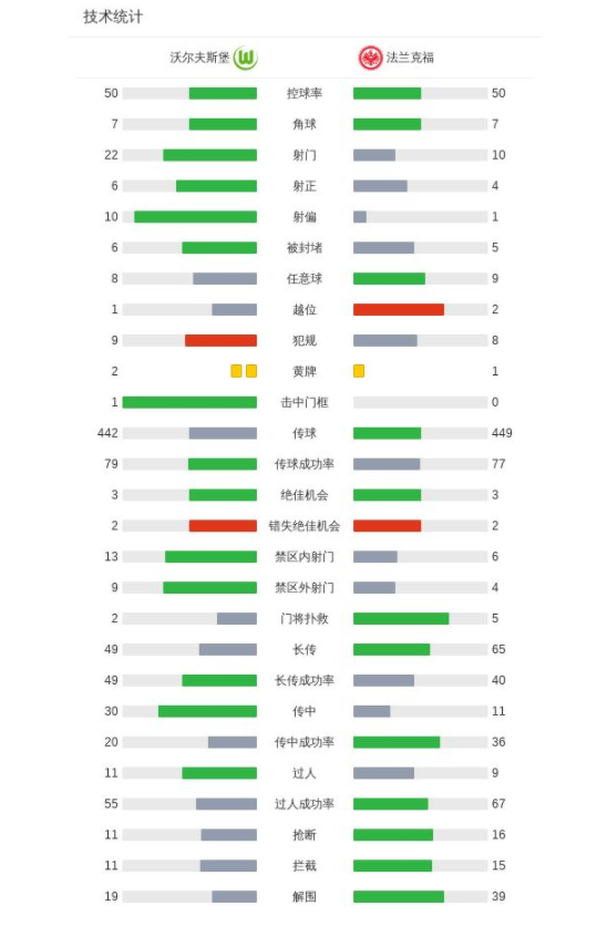北京时间4月11日德国足球顶级联赛 联赛 第29轮,沃尔夫斯堡主场对阵法兰克福。沃尔夫斯堡佩契诺维奇破门。法兰克福奥斯卡-霍伊伦破门,卡利穆恩多破门。最终比分沃尔夫斯堡 1-2 法兰克福。