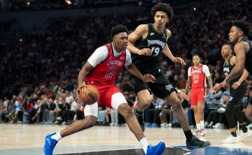 森林狼队首发:小特伦斯-香农、若昂-贝兰热、乔-英格尔斯、杰伦-克拉克、丹特-迪文琴佐