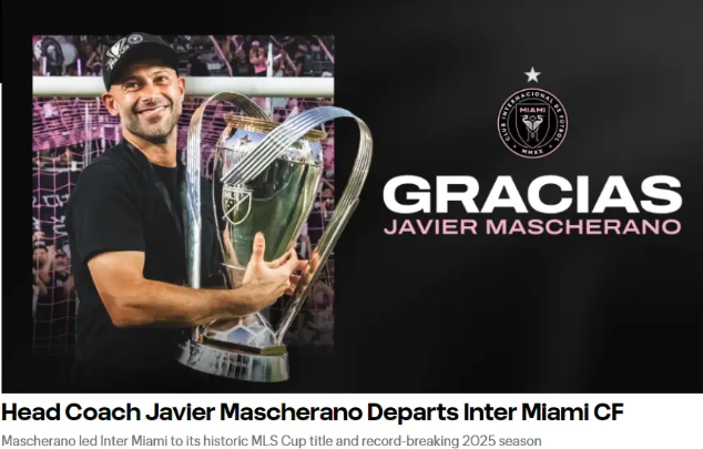 官方:迈阿密国际功勋主帅马斯切拉诺因个人原因辞职
