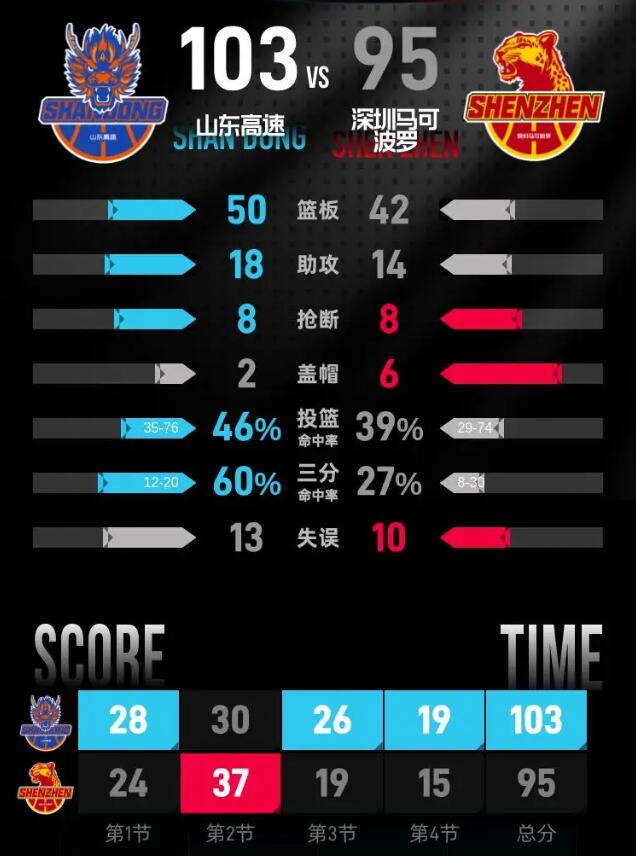 全场具体比分(深圳马可波罗队在后):28-24、30-37、26-19、19-15。